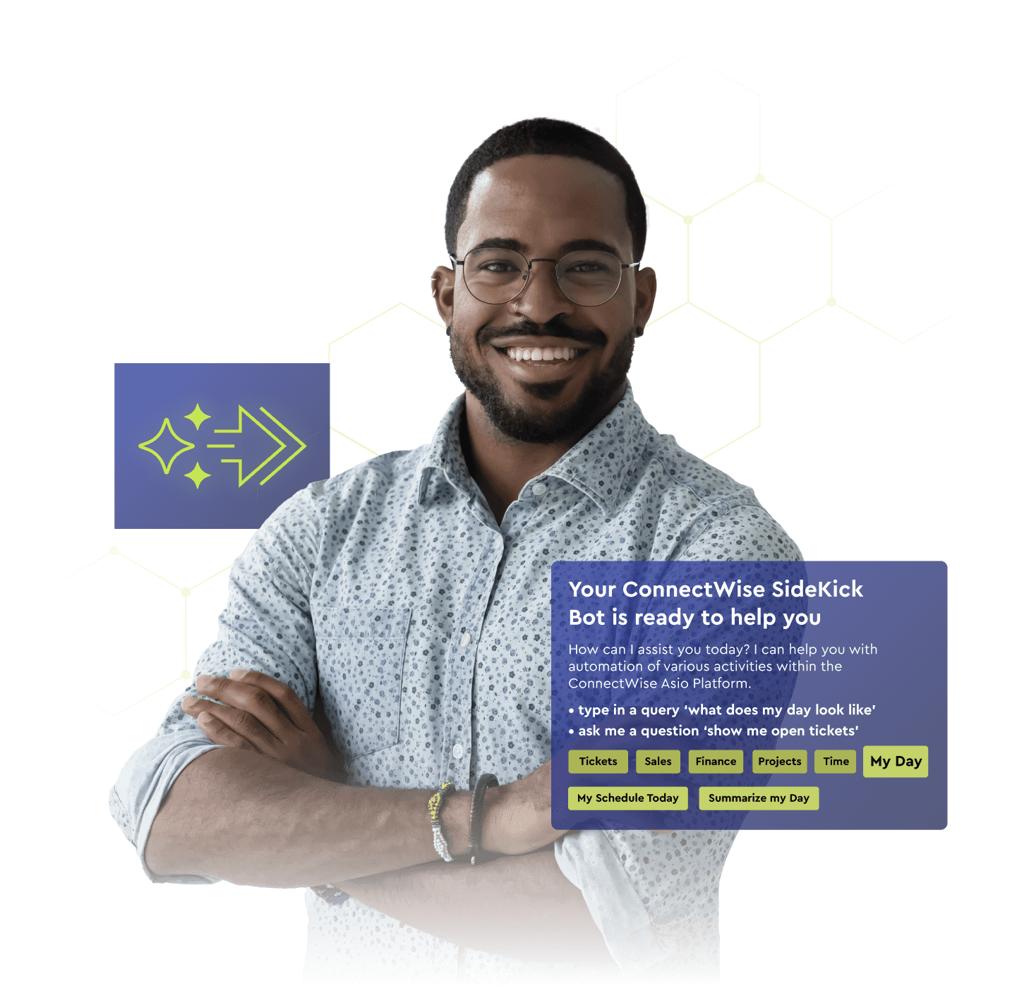 Powerful generative AI and machine learning dramatically speed up triaging, working, and resolving tickets. Access to PSA records and business insights ConnectWise Sidekick bot in Microsoft Teams makes it a valuable asset to every role within your org.