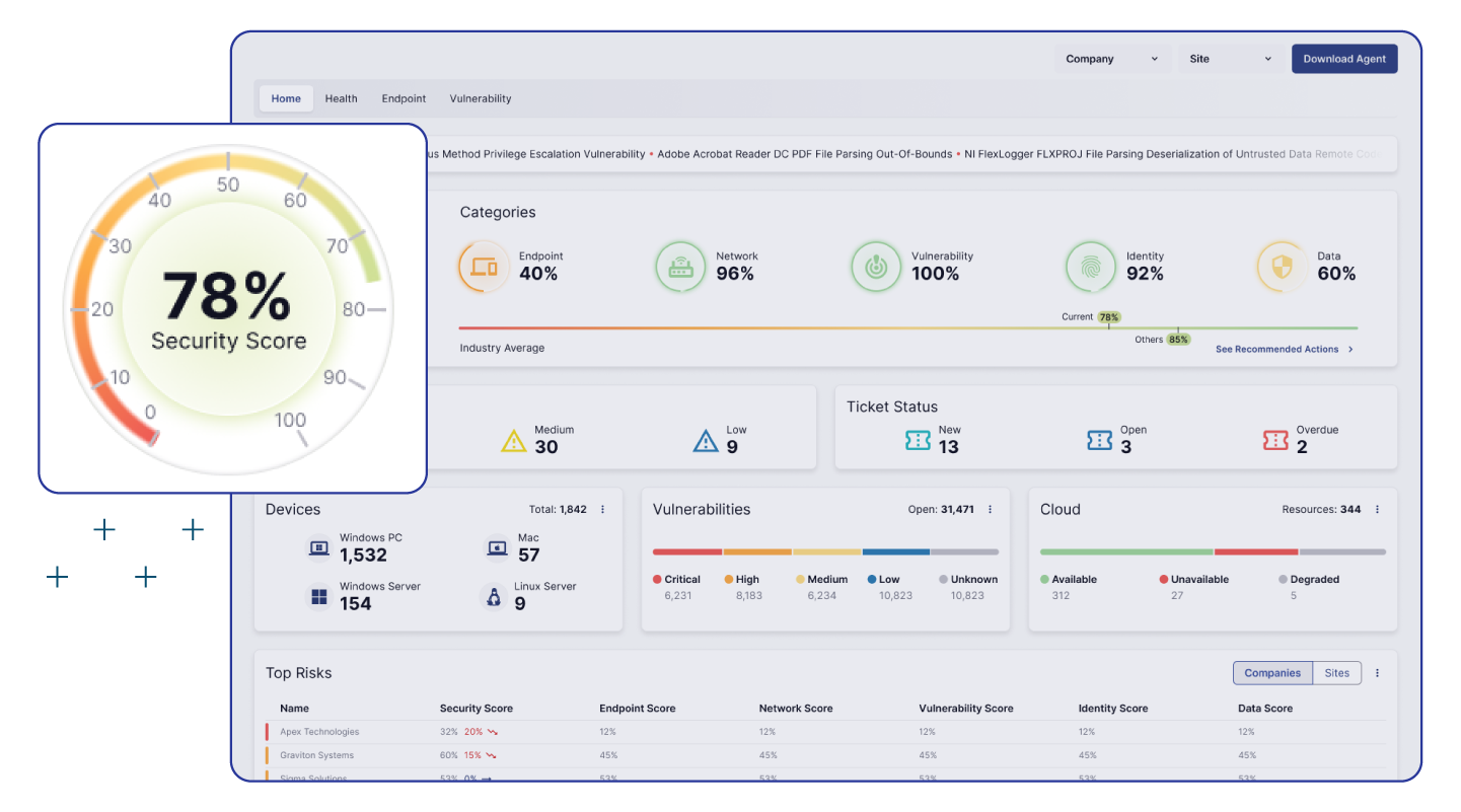 Create, assign, and resolve security tickets from one place to streamline vulnerability remediation, reduce response times, and improve accountability across all clients.
