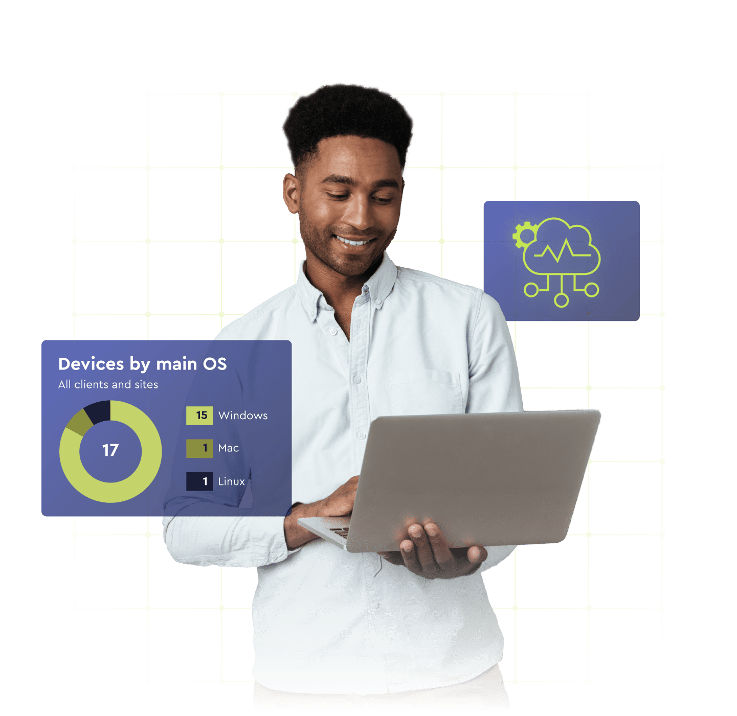 No more juggling disconnected tools. Get a real-time, unified view into every endpoint and network device across your environment—so you always know what's happening and where. With centralized visibility into performance, patching, and alerts, you can quickly assess health, spot issues early, and focus on strategic work instead of firefighting.