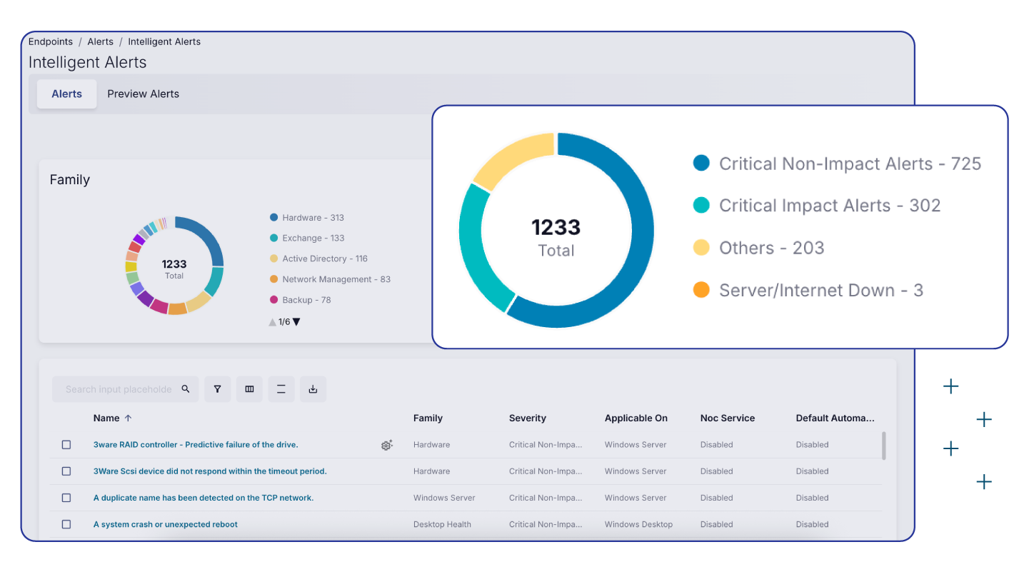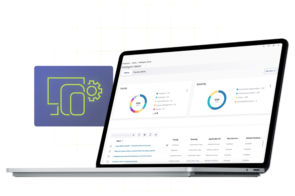 Monitor and manage every endpoint from a single pane of glass, and reduce alert noise by up to 80% with intelligent alerting and prebuilt remediation tasks.