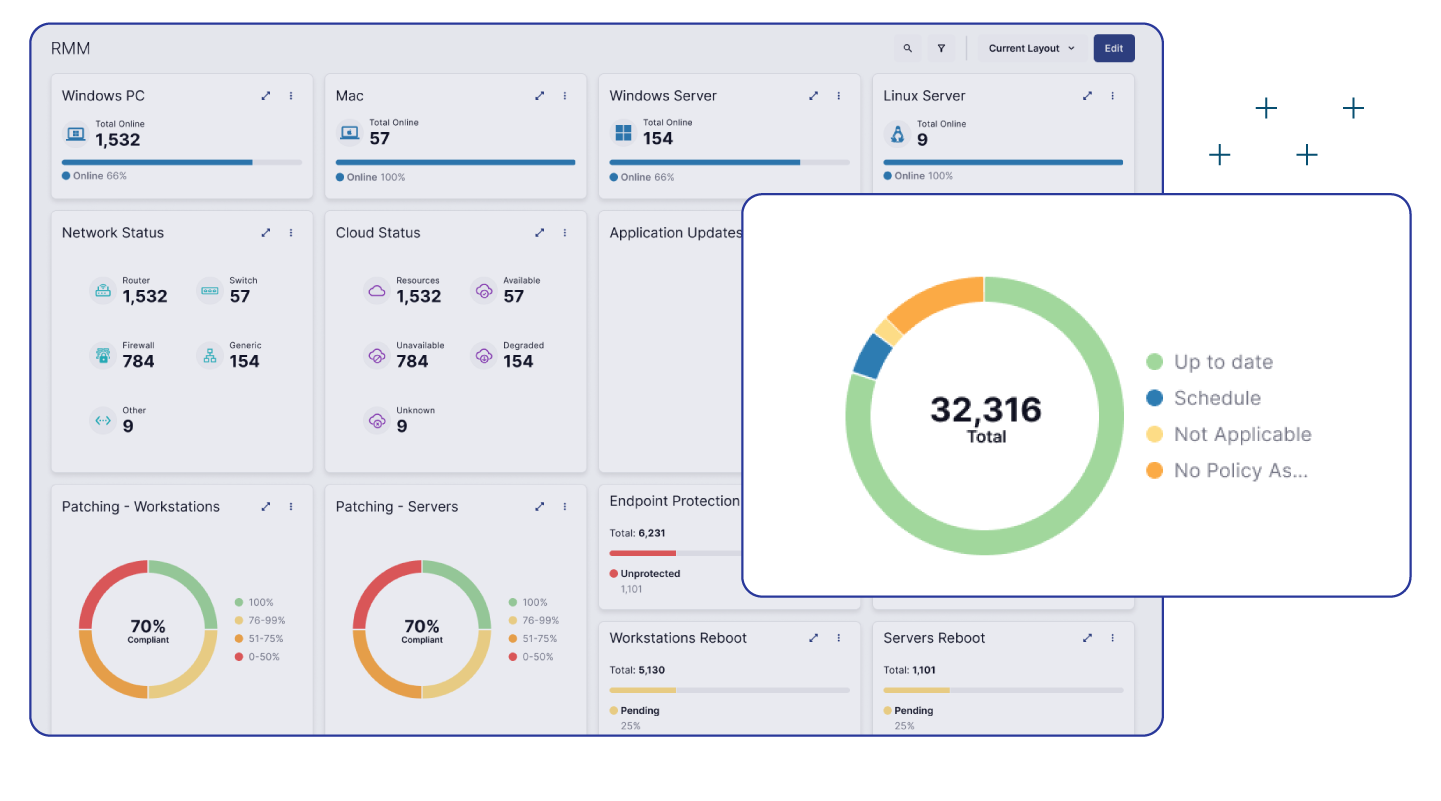 - Gain complete visibility through powerful remote monitoring and management (RMM)