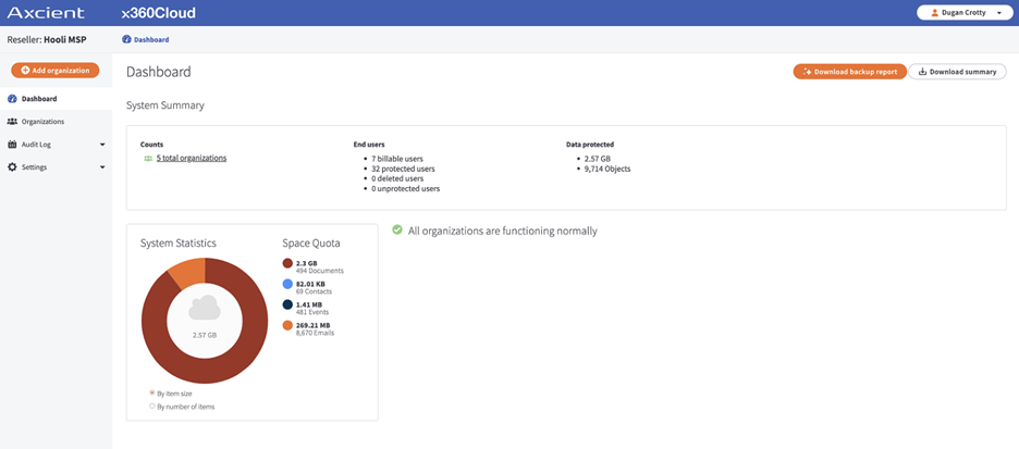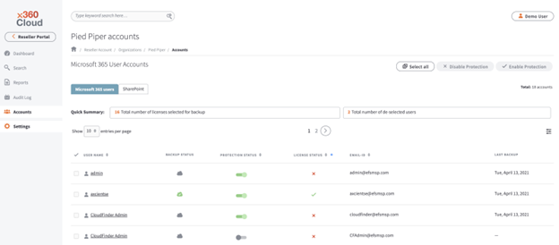 x360Cloud protects data in Microsoft 365 and Google Workspace. With this cloud-to-cloud backup, our partners can keep businesses running and be audit-ready with searchability and fast restores of items and data within their Microsoft 365 and Google Workspace backups. Axcient x360Cloud automatically backs up Microsoft 365 and Google Workspace data so that it can always be located, restored, and audited for uninterrupted business continuity after a data loss incident.