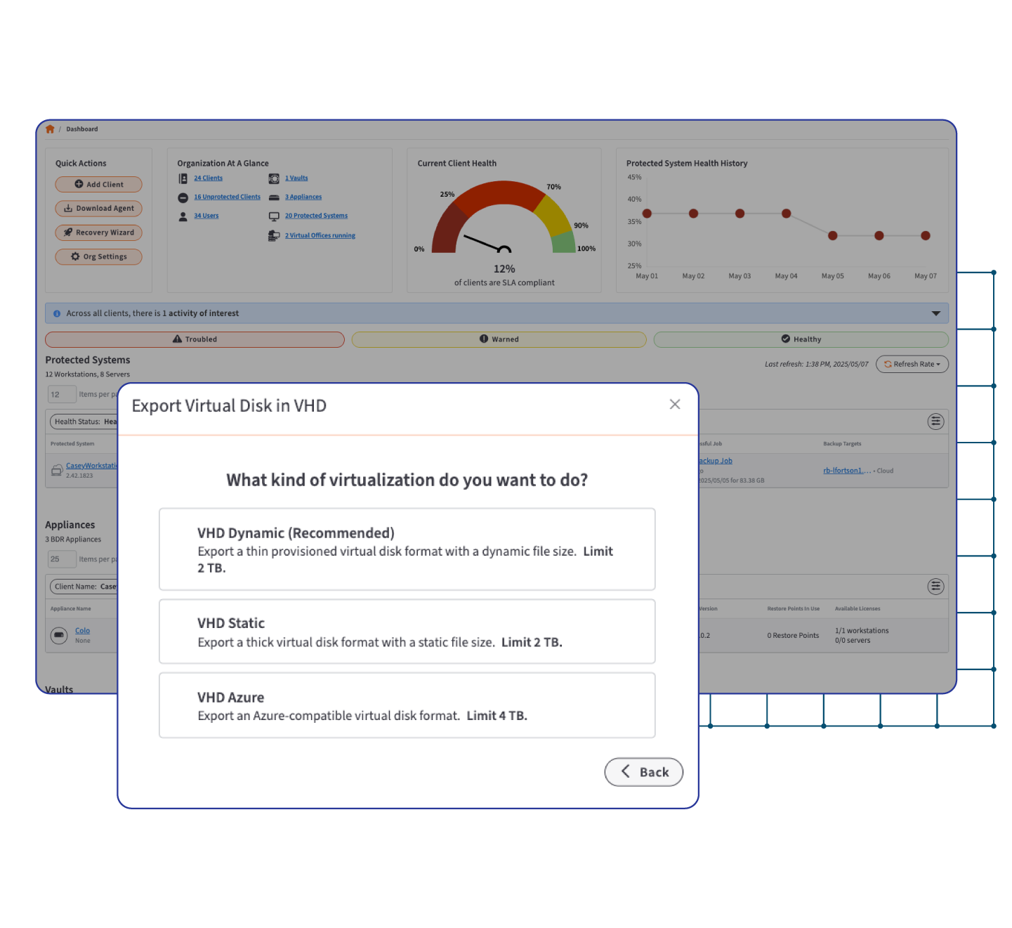 Yes—bring your own device (BYOD) or bring your own cloud (BYOC)! Cloud- and hardware-agnostic BCDR with ConnectWise gives MSPs the choice and flexibility to design the best service for their customers and support optimal margins and customer SLAs.